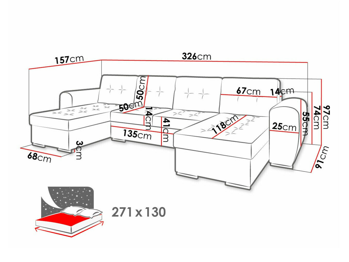 Breite des Schlafbereichs: