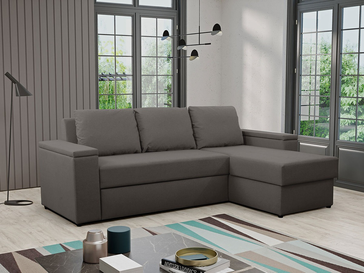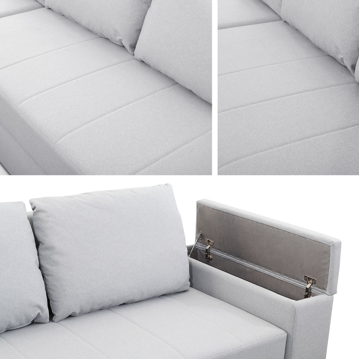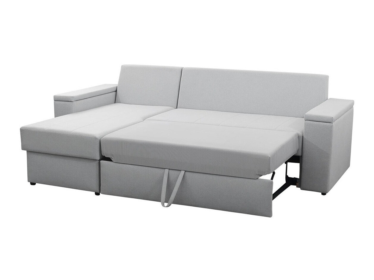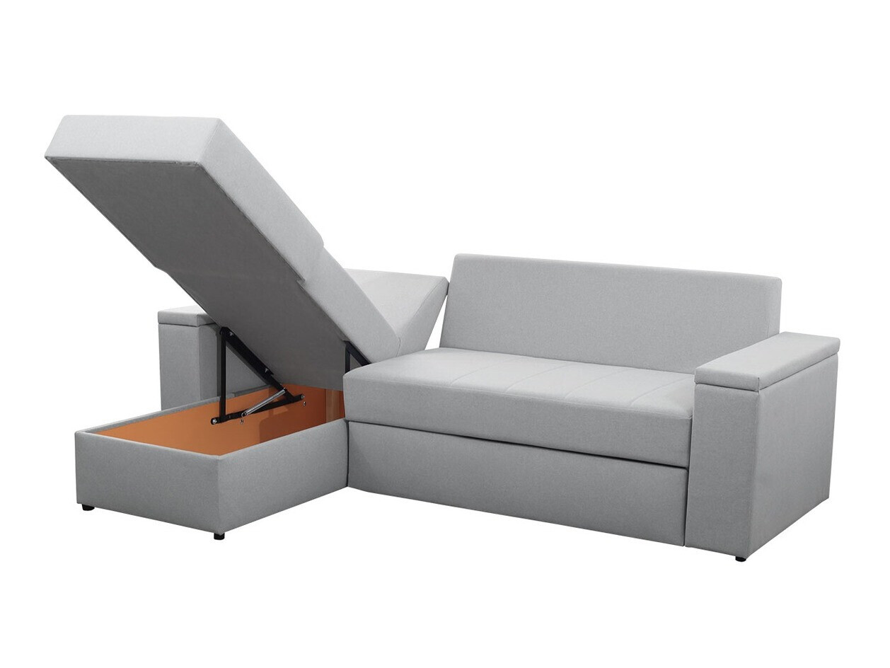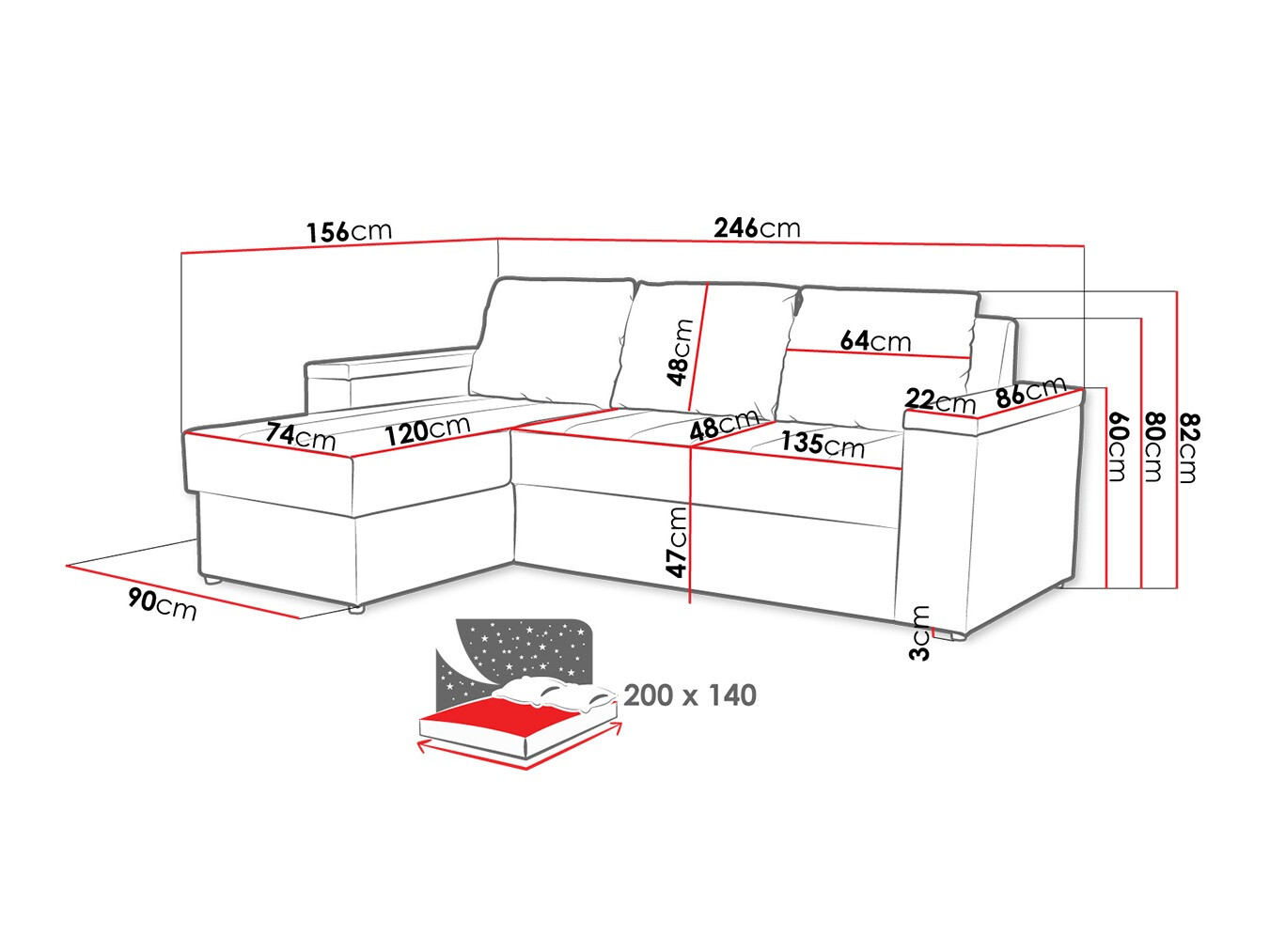 Es handelt sich um eine einfache und bequeme Lösung, mit der Sie das Möbelstück ohne großen Aufwand umbauen können. Die Schublade unter dem Sitz ist unsichtbar, und wenn sie herausgezogen wird, kann das Möbelstück zu einem großartigen Schlafplatz werden. Um das Möbel aufzuklappen, ziehen Sie einfach den unteren Teil zu sich heran und ziehen Sie die Schublade mit der zusätzlichen Schlaffläche heraus. Verwenden Sie die Schlaufe, um die Matratze darin anzuheben. Dieser Schlafbereich ist etwas steifer als üblich. Da sich der hintere Teil nicht bewegt, können Möbel mit diesem Mechanismus direkt an die Wand gestellt werden.