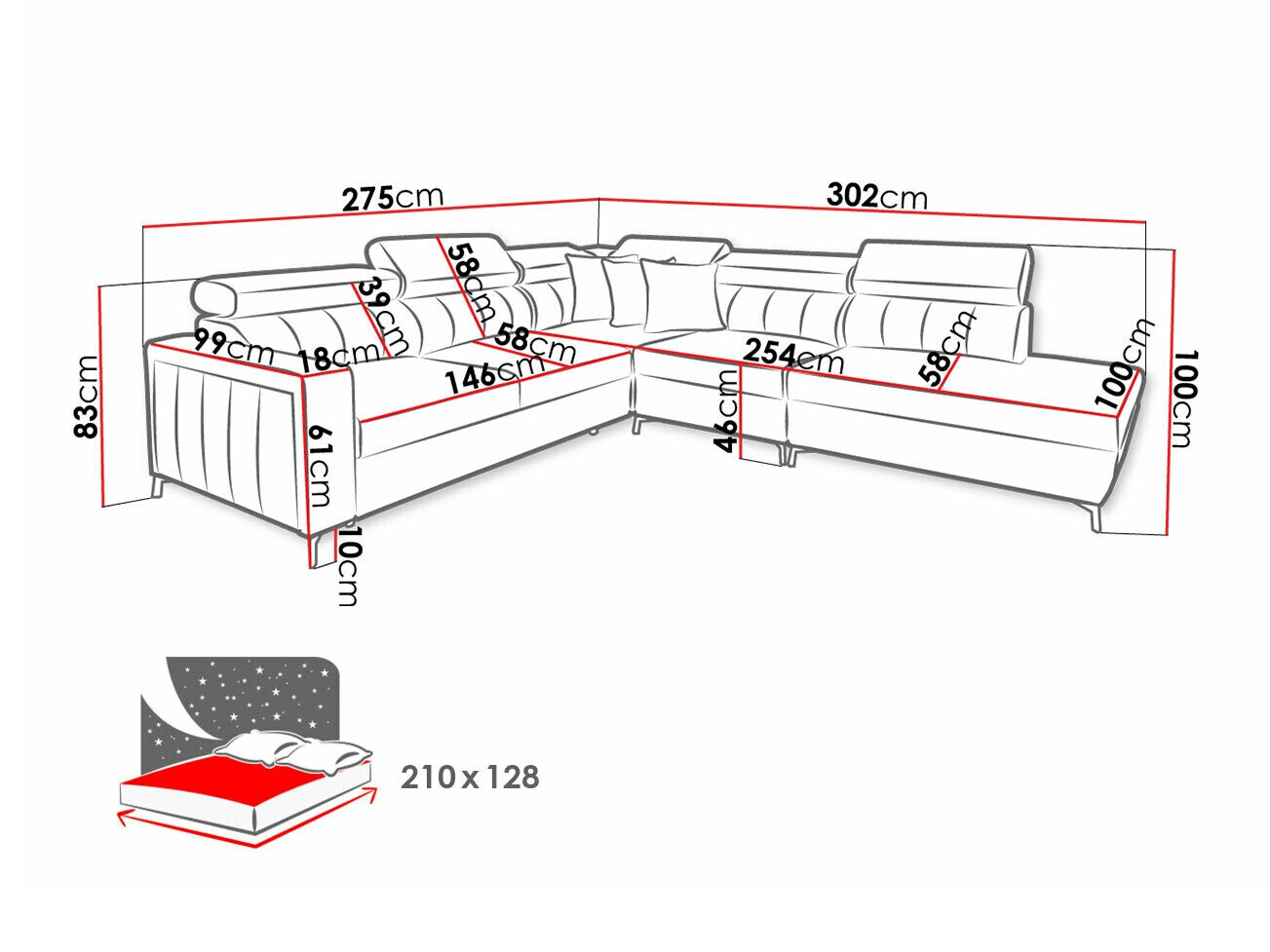 83 cm  302 cm  275 cm
