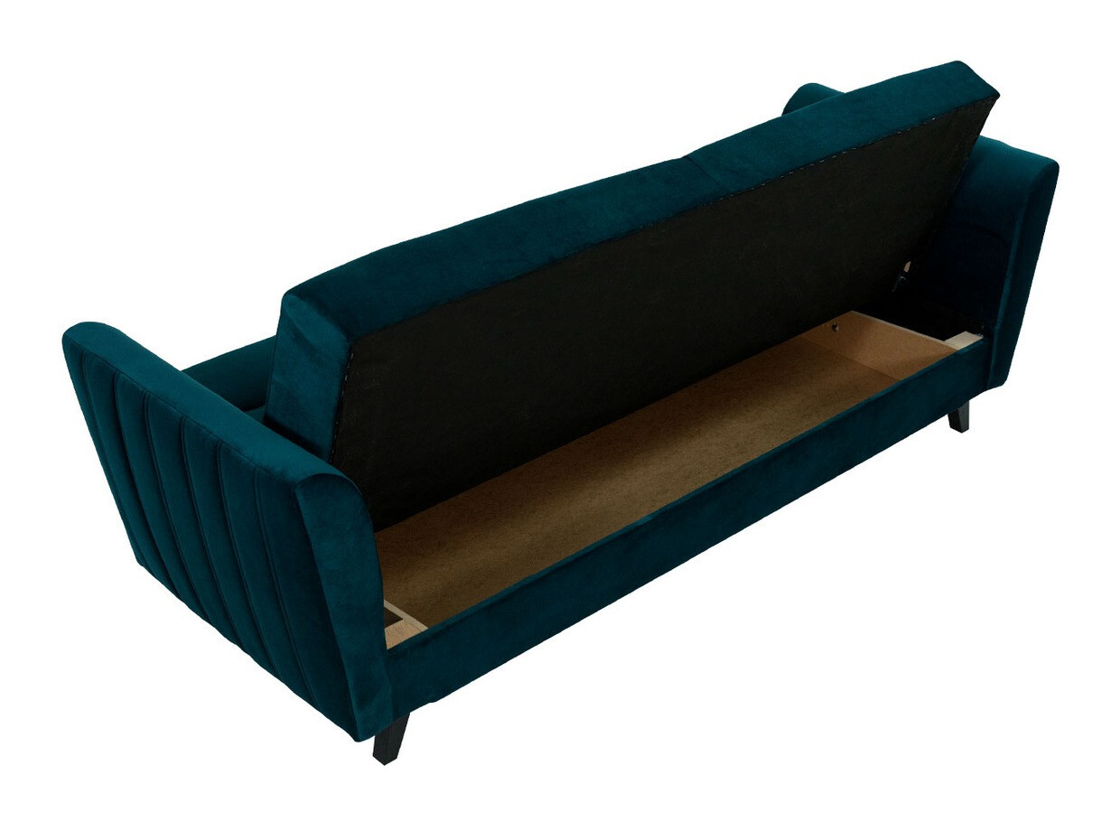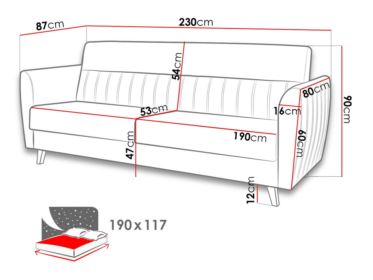 Dieser einfache Schlafmechanismus ist extrem leicht zu bedienen. Zwei Handgriffe genügen, und das Möbelstück ist schlafbereit. Heben Sie den Sitz an, bis Sie die Arretierung spüren, und senken Sie ihn dann ab, um das Möbel vollständig auszuklappen. Um das Möbelstück wieder in seine ursprüngliche Position zu bringen, wiederholen Sie einfach die Schritte. Wir raten Ihnen, vor dem Umbau einen Spalt zwischen der Wand und dem Möbel zu lassen, damit Sie die Wand beim Anheben des Sitzteils des Sofas nicht beschädigen. Außerdem verfügt dieser Mechanismus über einen integrierten zusätzlichen Platz für Bettzeug.