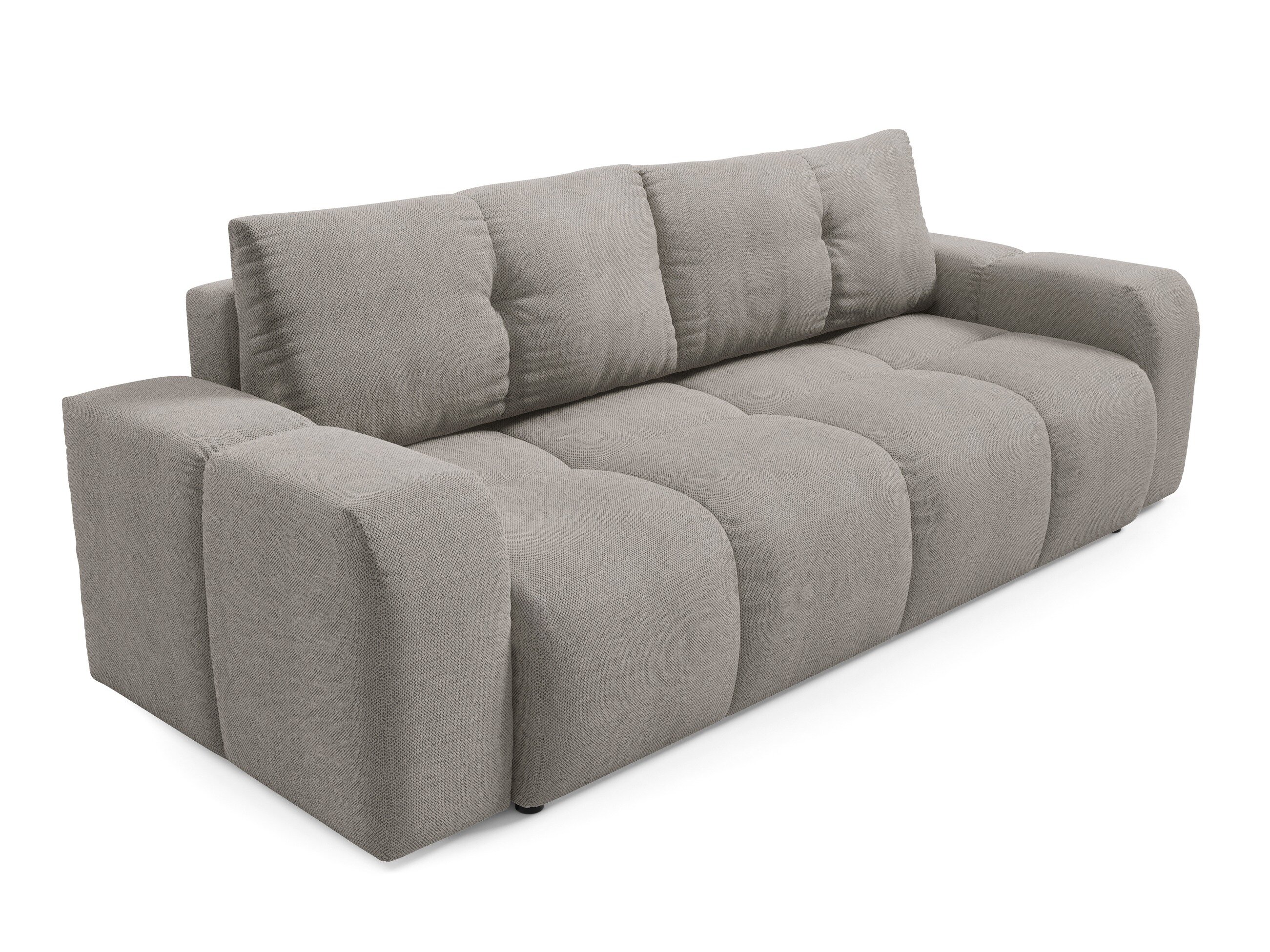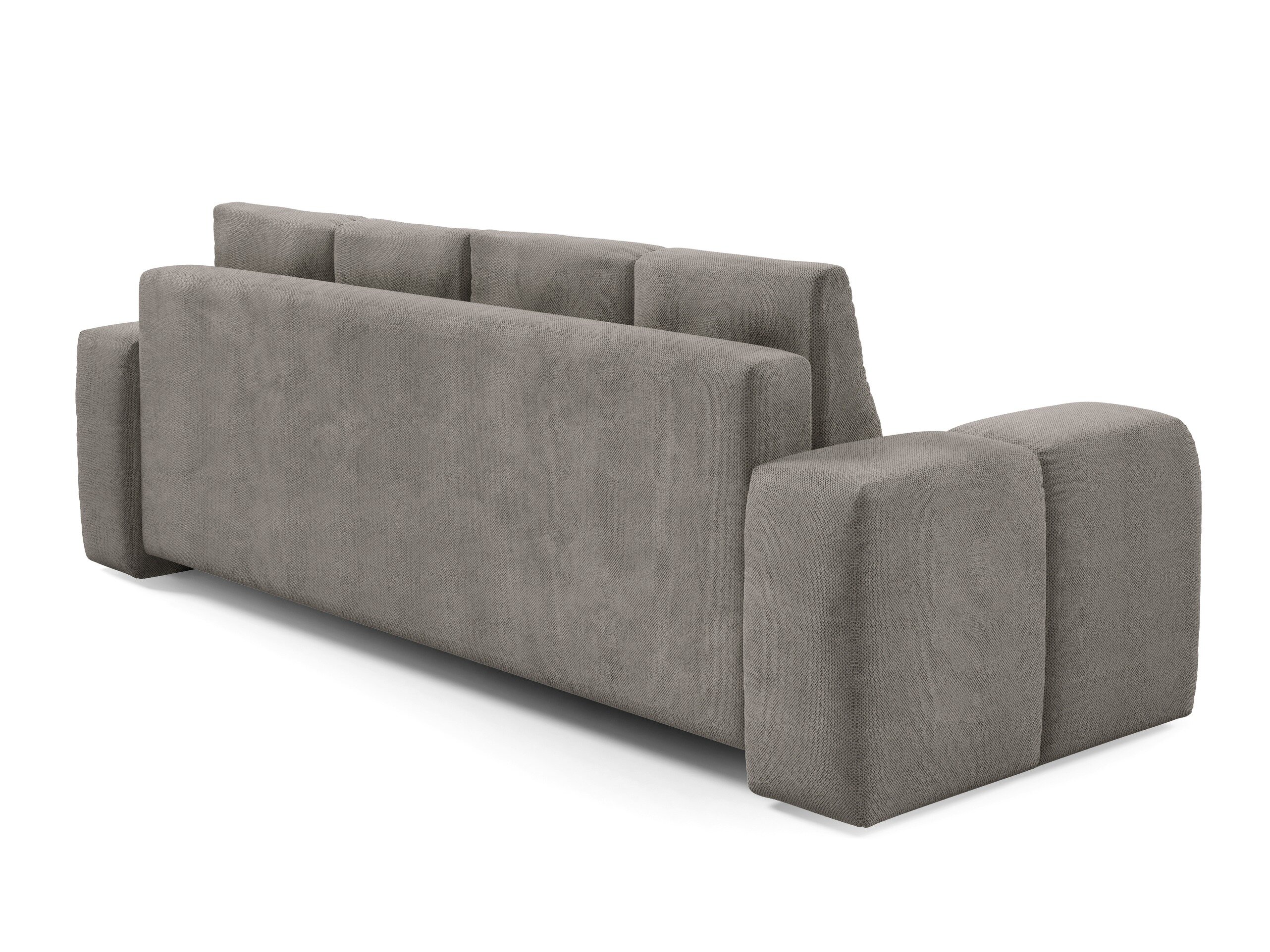 Es handelt sich um eine einfache und bequeme Lösung, mit der Sie das Möbelstück ohne großen Aufwand umbauen können. Die Schublade unter dem Sitz ist unsichtbar, und wenn sie herausgezogen wird, kann das Möbelstück zu einem großartigen Schlafplatz werden. Um das Möbel aufzuklappen, ziehen Sie einfach den unteren Teil zu sich heran und ziehen Sie die Schublade mit der zusätzlichen Schlaffläche heraus. Verwenden Sie die Schlaufe, um die Matratze darin anzuheben. Dieser Schlafbereich ist etwas steifer als üblich. Da sich der hintere Teil nicht bewegt, können Möbel mit diesem Mechanismus direkt an die Wand gestellt werden.
