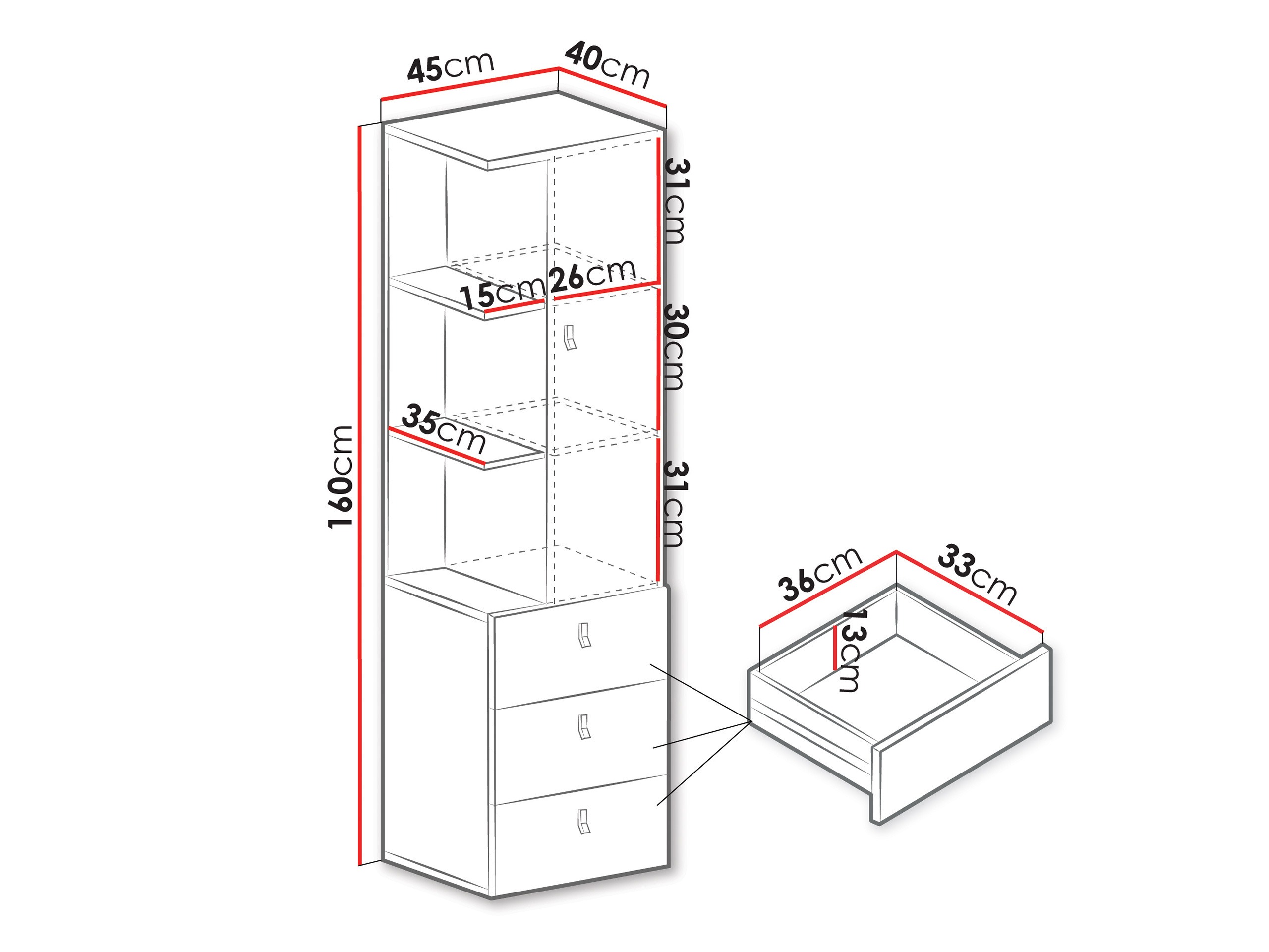 Wenn wir ein Zimmer für ein Kind oder einen Jugendlichen einrichten, müssen wir darauf achten, dass die Möbel praktisch sind und den Erwartungen der jungen Leute entsprechen. Genau das finden Sie in der Möbelkollektion für den Jugendzimmerbereich. Wenn man die Kollektion mit wenigen Worten beschreiben müsste, wären es sicher modern und praktisch. Die Anordnung der Schränke und Schubladen wird durch die Farbpalette unterstrichen. Wenn Sie noch am Überlegen sind, welche Farben Sie im Zimmer haben möchten, werden Ihnen die beiden Farbkombinationen die Entscheidung erleichtern. Die Kombination aus Weiß, Eichenholzoptik und Türkis eignet sich für eine helle und verspielte Einrichtung, die durch einen türkisfarbenen Akzent ergänzt wird. Die Kombination aus Schwarz, Eichenholzoptik und Beige schafft ein kontrastreiches und gleichzeitig elegantes Design. Die Möbelfronten werden durch kleine Metallgriffe ergänzt. Zahlreiche Fächer sorgen für Ordnung und bieten Platz für alle wichtigen Dinge. In der Kollektion finden Sie einen besonders geräumigen Eckschrank, einen Schreibtisch, ein Bett, ein Regal und vieles mehr. Die Möbelkollektion ist für junge Personen konzipiert und angepasst. Zum Traumzimmer fehlt nur noch ein Schritt: die Wahl der Farbkombination.