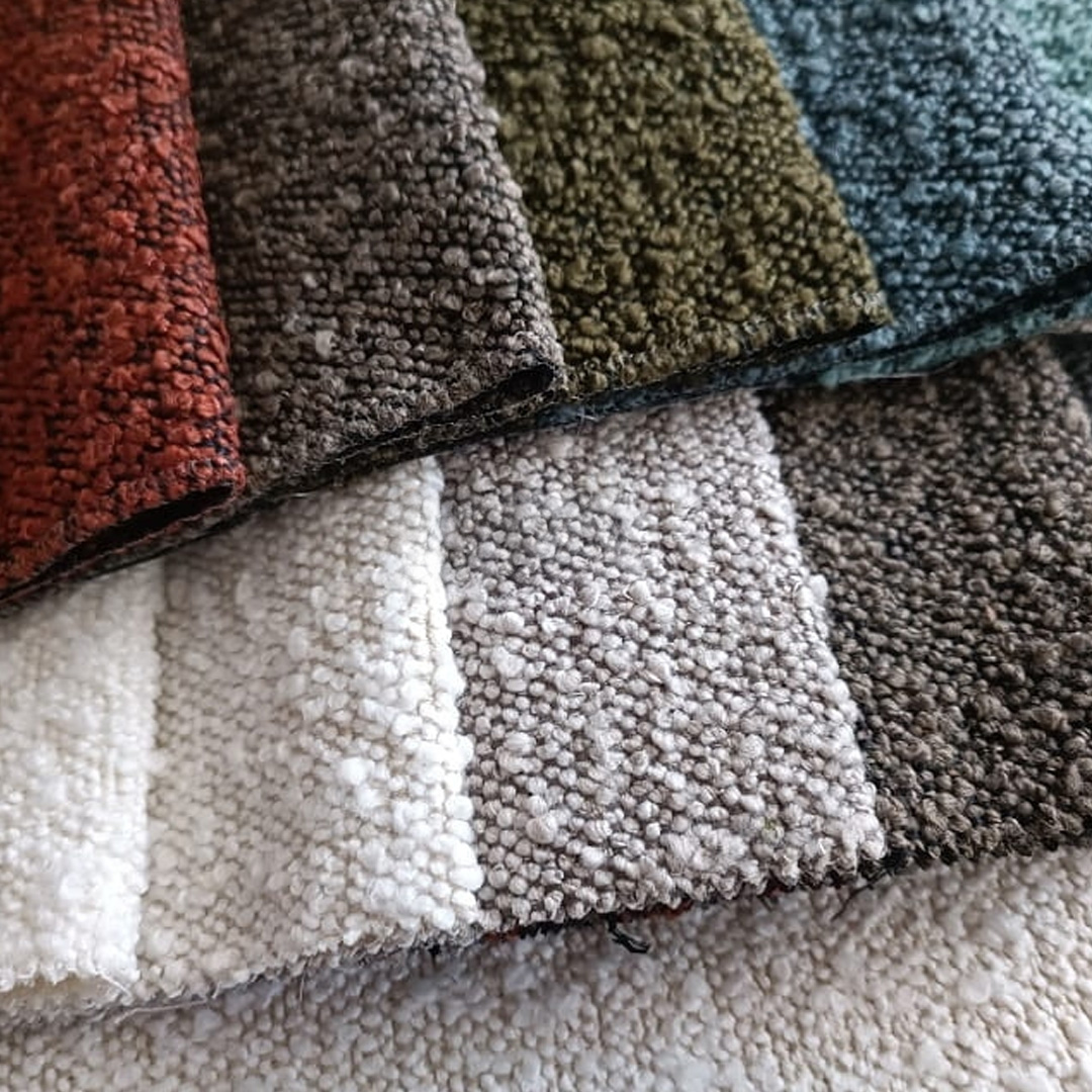 Ein Stoff mit einer Struktur aus Schlaufen und Knoten in unterschiedlichen Größen, die dem Möbelstück einen einzigartigen Charakter verleiht. Der Stoff ist vom Textilinstitut „Oeko-Tex“ zertifiziert, also frei von allergenen Stoffen. Dank seiner hohen Abriebfestigkeit behält er lange sein ursprüngliches Aussehen. Zur Pflege werden ausschließlich sanfte Polsterreiniger empfohlen.