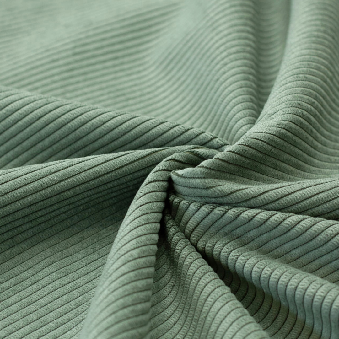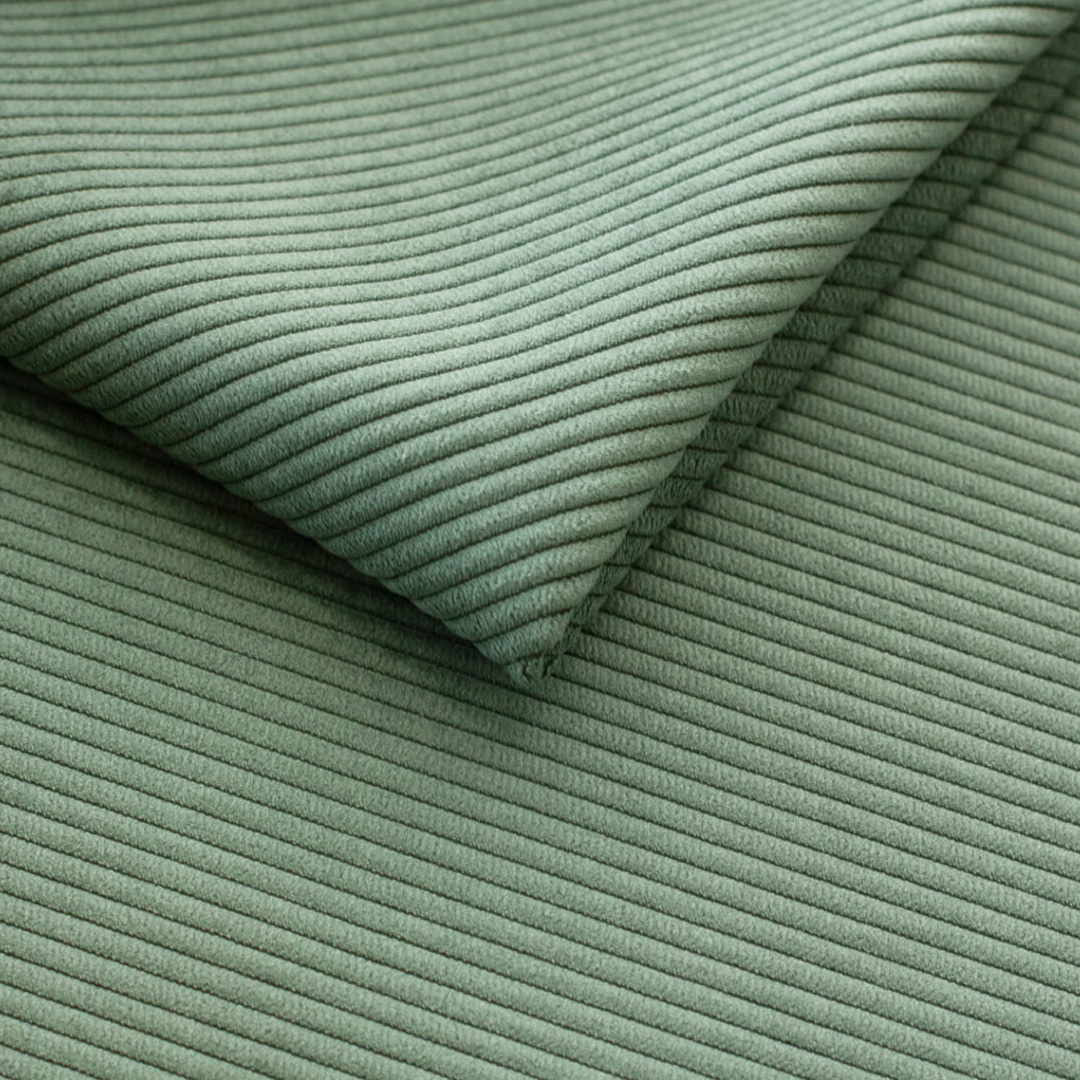 Ein weicher, matter Stoff, der sich durch tiefe, sichtbare Rillen auszeichnet, die ihm eine einzigartige und charakteristische Textur verleihen. Die Oberfläche ist resistent gegen schnelle Flüssigkeitsaufnahme, sodass Verschüttetes leicht mit einem trockenen Tuch abgewischt werden kann. Der Stoff ist nach dem Textilstandard „Oeko-Tex” zertifiziert, was bestätigt, dass er frei von allergenen Substanzen ist und für den täglichen Gebrauch unbedenklich ist. Es wird empfohlen, die gesamte Stoffoberfläche mit milden, für Polster geeigneten Reinigungsmitteln zu reinigen.