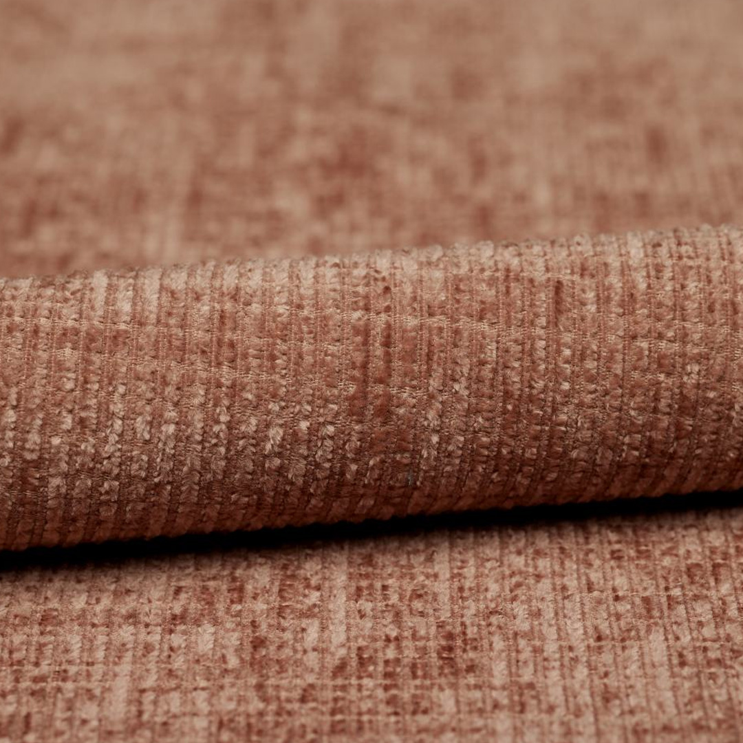 Ein weicher Stoff mit Garnen in mehreren Farbtönen und einem Muster, das an ein feines Gewebe erinnert. Die Oberfläche ist abrieb- und pillingresistent. Zur Pflege werden ausschließlich milde Reinigungsmittel empfohlen, die für Polsterstoffe entwickelt wurden.