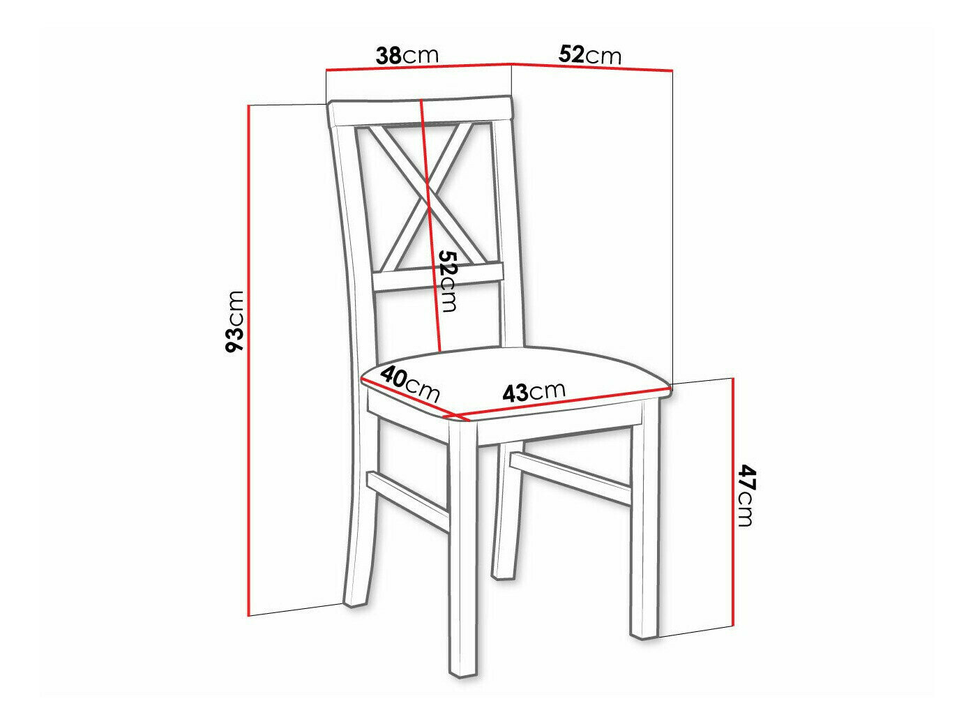 93 cm  43 cm  52 cm