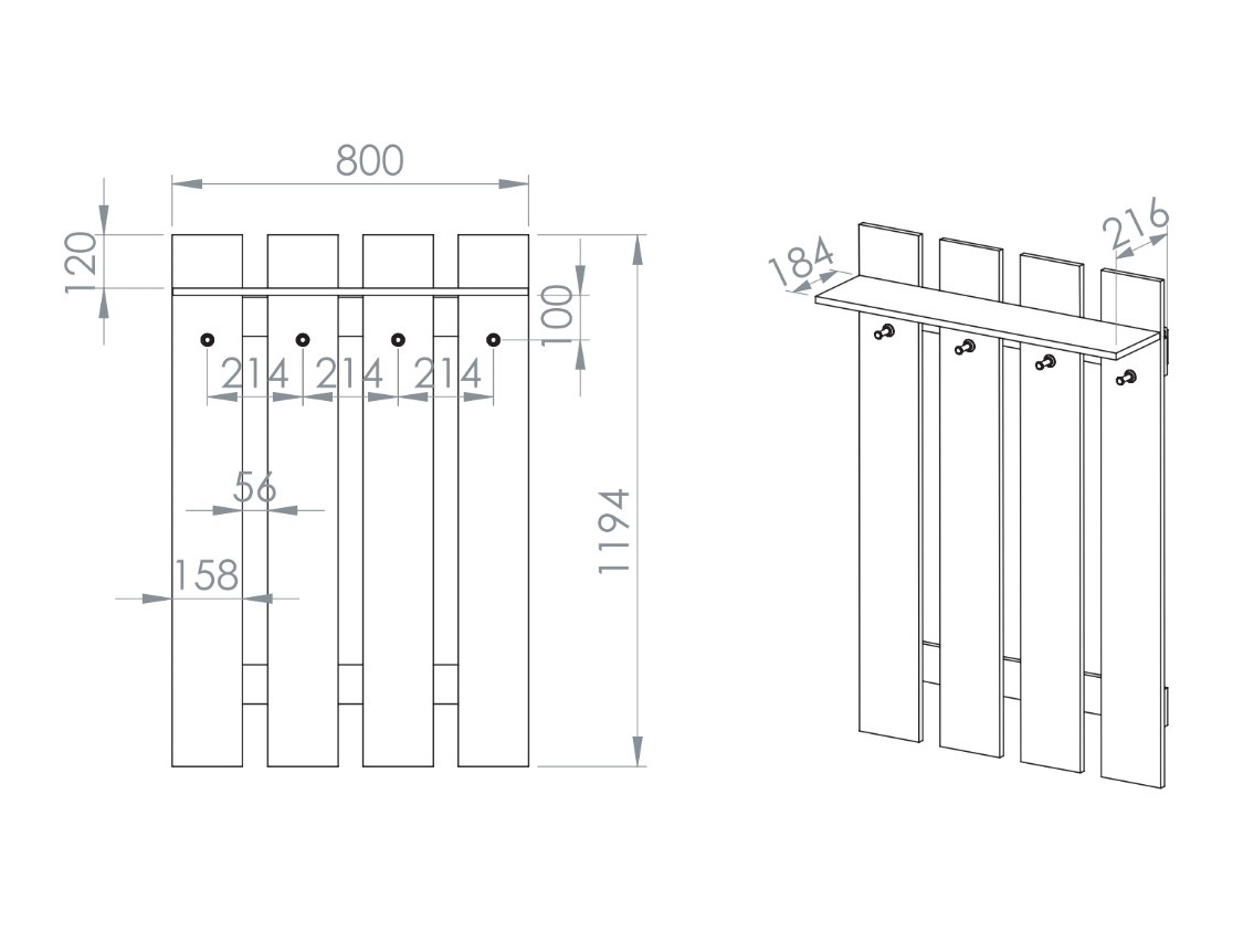 - An der Wand montierte Garderobe