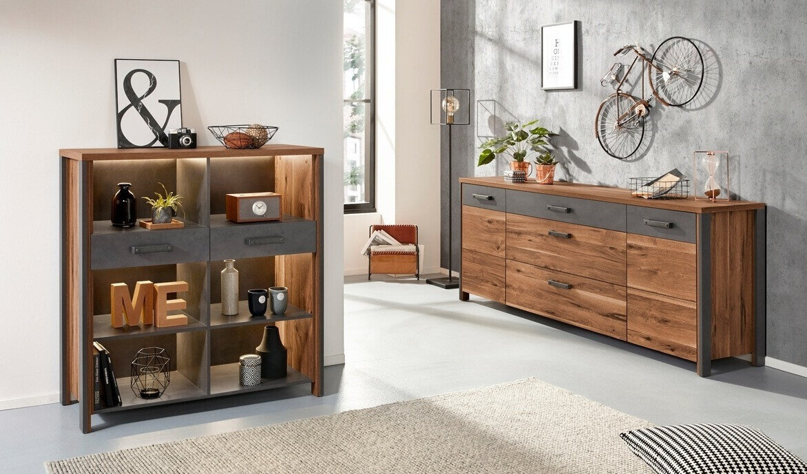 Kommoden Austin Y103 (Royal eichenholzoptik + Matera grau)